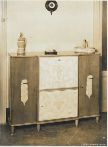 La produzione di mobili di lusso di Aldo Tura nasce nel 1939 e si sviluppa in parallelo alla linea degli oggetti, seguendo gli stessi criteri di unicità, censimento e numerazione progressiva che hanno reso la manifattura immediatamente riconoscibile. Ogni arredo veniva concepito come opera autonoma, progettato e realizzato con processi artigianali altamente specializzati, in pergamena naturale lavorata e tinta a mano, guscio d’uovo, lacca e inserti metallici lucidati.